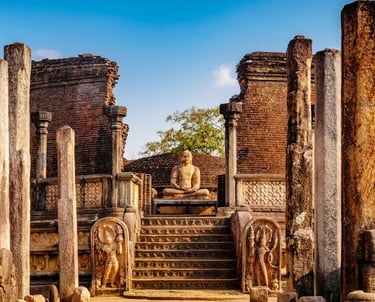 A short but culturally dense transit leads us to the ruins of Polonnaruwa. This UNESCO World Heritage site is an outdoor museum of 11th-century engineering. Navigate your Jeep between massive stone-carved Buddhas at Gal Vihara and the ruins of the Royal Palace. The terrain here is flat but rich with history, providing an excellent backdrop for photography and exploration of ancient irrigation marvels.